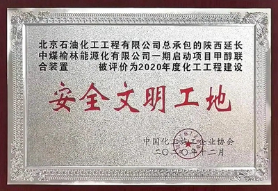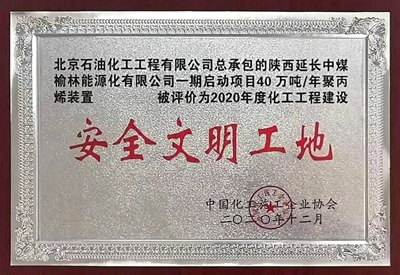 近日,從中國化工施工企業(yè)協(xié)會傳來喜訊,由公司總承包的榆能化一期啟動項目填平補齊工程甲醇聯(lián)合裝置2線和40萬噸/年聚丙烯裝置被授予“2020年度化工工程建設安全文明工地”稱號。
