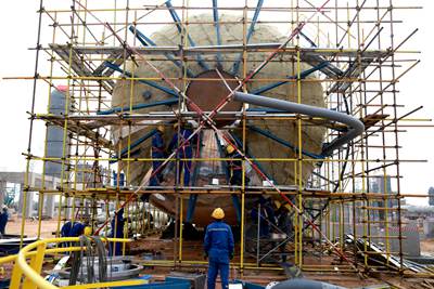 值得一提的是,項(xiàng)目核心乙醇裝置長(zhǎng)周期設(shè)備陸續(xù)交貨到場(chǎng)安裝就位;土建施工總體完成73%,主要建筑物開(kāi)始裝修,落地設(shè)備基礎(chǔ)交付安裝,壓縮機(jī)廠房及其基礎(chǔ)施工正在按計(jì)劃進(jìn)行;裝置安裝工作全面推進(jìn),7臺(tái)反應(yīng)器全部安裝完成,核心塔器正進(jìn)行現(xiàn)場(chǎng)安裝攻堅(jiān)。與此同時(shí),熱動(dòng)力站也在快馬加鞭的進(jìn)行,目前鍋爐汽輪機(jī)房主體結(jié)構(gòu)施工和裝修正已同步啟動(dòng),1號(hào)鍋爐鋼結(jié)構(gòu)安裝完成,鍋爐及附件基本安裝完畢;2號(hào)、3號(hào)鍋爐正進(jìn)行鍋爐鋼結(jié)構(gòu)安裝,全力為今年11月鍋爐點(diǎn)火做好準(zhǔn)備。