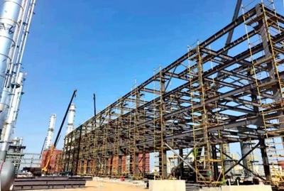甲醇聯(lián)合裝置鋼結(jié)構(gòu)約7100噸。目前,甲醇裝置管廊、精餾框架、變換框架、凈化壓縮機(jī)廠房鋼結(jié)構(gòu)已全面開始安裝,累計(jì)完成安裝2600余噸。(通訊員/衣成波 攝/衣成波)