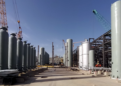 TSA/PSA成套包設(shè)備共35臺,主要設(shè)備有吸附塔、緩沖罐,此單元用于提純合成氣中的CO和H2,用壓縮機增壓后送入甲醇和乙醇裝置作為原料氣使用。