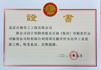 近日,由北京石油化工工程有限公司設(shè)計的延長石油集團煉化公司輕烴綜合利用項目喜獲中國化工施工企業(yè)協(xié)會化學(xué)工業(yè)優(yōu)質(zhì)工程獎。