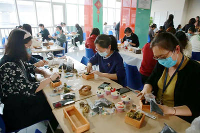 在下午開展的手工制作微景觀植物活動中,讓女職工顯露出動手的天賦。工作人員事先準(zhǔn)備了制作微景觀多肉植物的相關(guān)材料,如玻璃瓶、木盒、繁殖土、鋪面石、裝飾砂石、擺件等,大家將不同種類的多肉植物搭配在一起,填土、配色、種植、鋪面,不一會,一盆盆精美的盆栽爭奇斗艷,大家分享經(jīng)驗(yàn),交流養(yǎng)護(hù)心得,釋放了壓力,舒緩了心情。