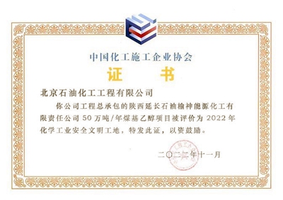 近日,由北京石油化工工程有限公司(簡稱:北油工程)總承包的榆神能化50萬噸/年煤基乙醇項目獲得中國化工施工企業(yè)協(xié)會頒發(fā)的“2022年度化學(xué)工業(yè)優(yōu)質(zhì)精品工程”、“2022年度化學(xué)工業(yè)安全文明工地”及“2022年度化學(xué)工業(yè)綠色施工工程”等三項殊榮。