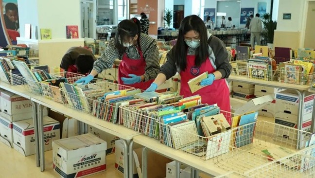 公司團(tuán)委組織志愿者來(lái)到慈善書市進(jìn)行志愿服務(wù)活動(dòng),對(duì)義賣圖書整理分類,并打包裝車。慈善書市是慈善商店常規(guī)的籌款活動(dòng),會(huì)在各學(xué)校間輪流舉行。書市對(duì)公眾開(kāi)放,收入全部用于困境兒童的救助。