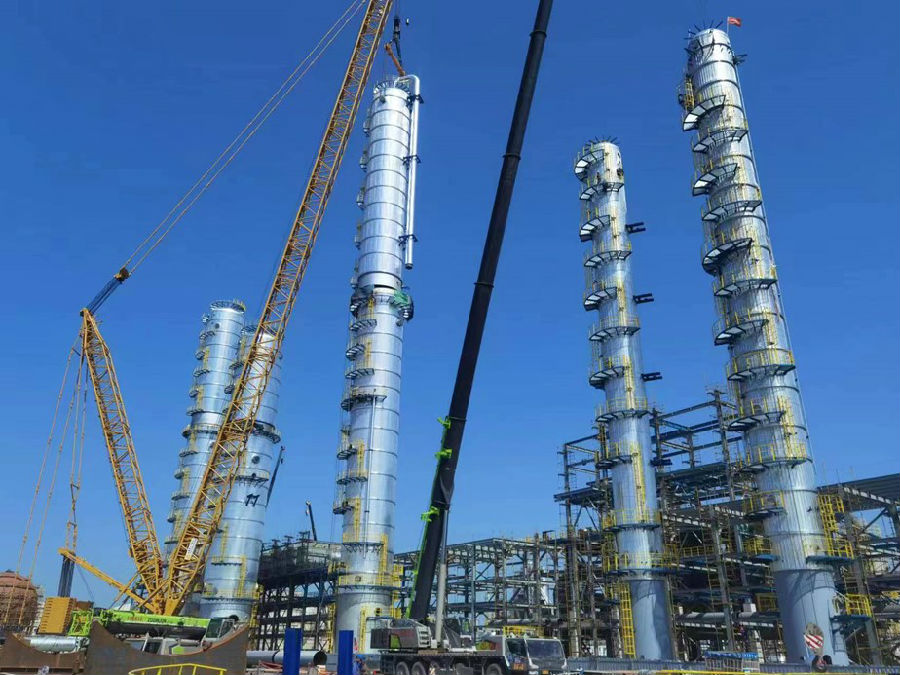 期間,項目還陸續(xù)完成二甲醚塔器、羰基化及產品分離繞管換熱器等大件設備吊裝,精準規(guī)劃吊車轉場,提高吊車使用效率。