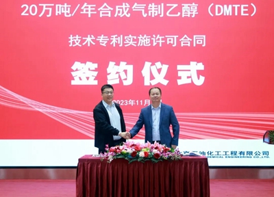 隨后,荊門(mén)源晗公司總經(jīng)理周虎,延長(zhǎng)中科(大連)能源科技股份有限公司總經(jīng)理王輝代表雙方簽署了20萬(wàn)噸/年合成氣制乙醇(DMTE)技術(shù)專(zhuān)利實(shí)施許可合同并分別致辭。簽約儀式結(jié)束后,召開(kāi)了項(xiàng)目設(shè)計(jì)開(kāi)工會(huì),與會(huì)人員對(duì)設(shè)計(jì)方案進(jìn)行了深入交流。