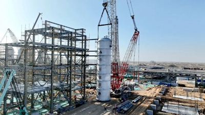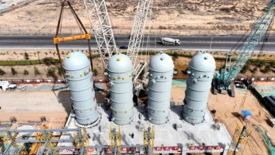 此次安裝的核心反應器包括1臺乙酸甲酯加氫反應器、1臺二甲醚反應器和4臺羰基化反應器,設備總重量達3040.8噸,其中單臺最重設備達621噸。目前,項目現(xiàn)場安裝工作已進入最后沖刺階段,項目團隊正搶抓施工黃金期,科學組織交叉作業(yè),全力推進項目建設進度。