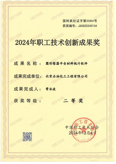 近日,在2024年全國(guó)職工技術(shù)創(chuàng)新成果評(píng)比中,北京石油化工工程有限公司自主研發(fā)的“圓形塔器平臺(tái)材料統(tǒng)計(jì)軟件”和“儀表位置圖輔助設(shè)計(jì)軟件”分別斬獲二等獎(jiǎng)、三等獎(jiǎng),展現(xiàn)了公司在石化工程數(shù)字化領(lǐng)域的創(chuàng)新實(shí)力。