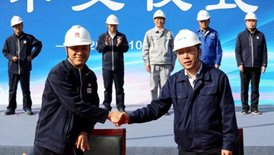 尹長炳代表北油工程鄭重簽署項目中間交接書,正式宣告該50萬噸/年甲醇制乙醇項目圓滿完成中交目標(biāo)。