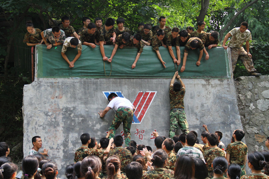 團(tuán)隊項目中,103名隊員僅用了29分鐘就成功翻越了4.3米高的畢業(yè)墻,團(tuán)隊的勝利使畢業(yè)生們體驗到集體的力量,體會到甘于奉獻(xiàn)的偉大,樹立了相互支持、精誠團(tuán)結(jié)的團(tuán)隊精神和合作意識。