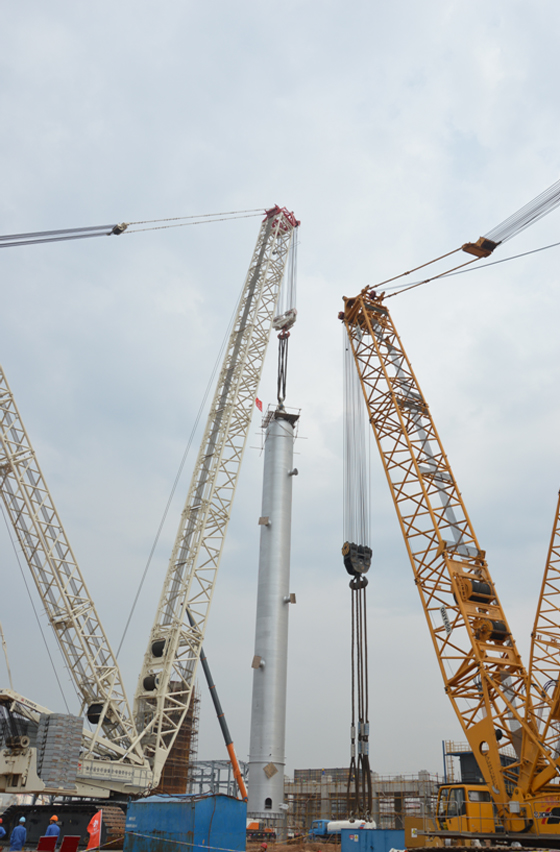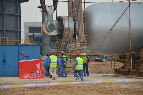 2013年9月3日上午9點18分,712項目加氫裂化固定床反應(yīng)器吊裝工作正式開始,11點18分反應(yīng)器吊裝完成,用時兩個小時,獲得一次性成功。這次吊裝成功,不僅彰顯著作為項目最核心裝置之一的固定床順利安裝到位,更重要的是我公司駐外項目積攢了豐富的經(jīng)驗,為今后大型設(shè)備安裝工作夯實了堅實的基礎(chǔ)。