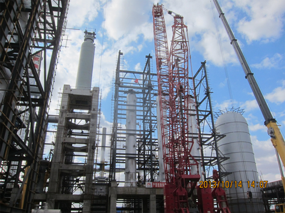 經(jīng)過近半個月時(shí)間的吊裝機(jī)械組裝及準(zhǔn)備工作,煤-油共煉試驗(yàn)示范項(xiàng)目(也稱“100項(xiàng)目”)再次掀起大型設(shè)備吊裝的高潮,2013年10月14日,100項(xiàng)目核心設(shè)備懸浮床反應(yīng)器(12-R-0102)順利完成吊裝作業(yè),至此3臺懸浮床反應(yīng)器全部完成吊裝,吊裝過程一氣呵成。